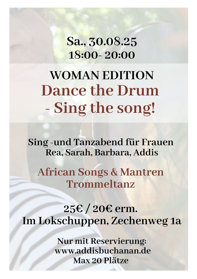 Ein Klangteppich aus Rhythmen und Gesängen lädt dich ein zum Tanzen, Mitsingen, Lauschen und Genießen.Von singenden und trommelnden Frauen für tanzende Frauen!