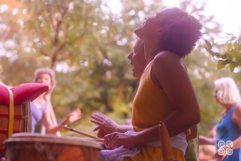 Wenn wir die Rhythmen mit dem Herzen willkommen heißen, öffnen sich wohltuende Räume – in unserem Inneren ebenso wie im Außen, in der Atmosphäre, die Tänzer:innen und Trommler:innen miteinander
